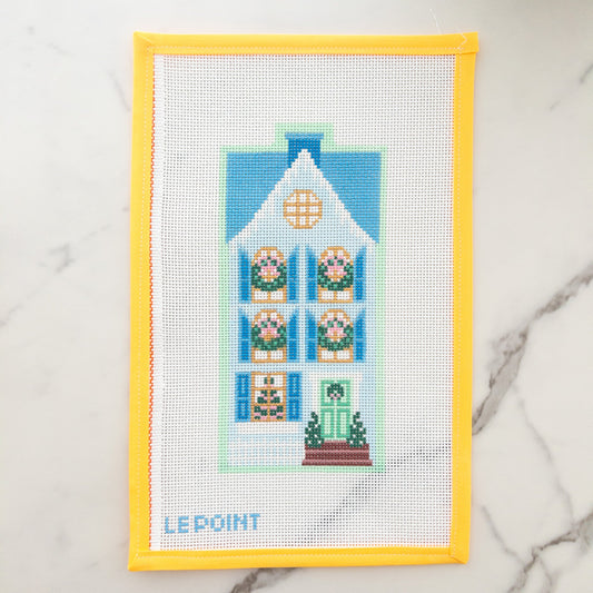 Christmas Village Blue Row House Needlepoint Canvas