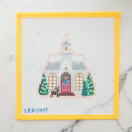 Christmas Village Church Needlepoint Canvas