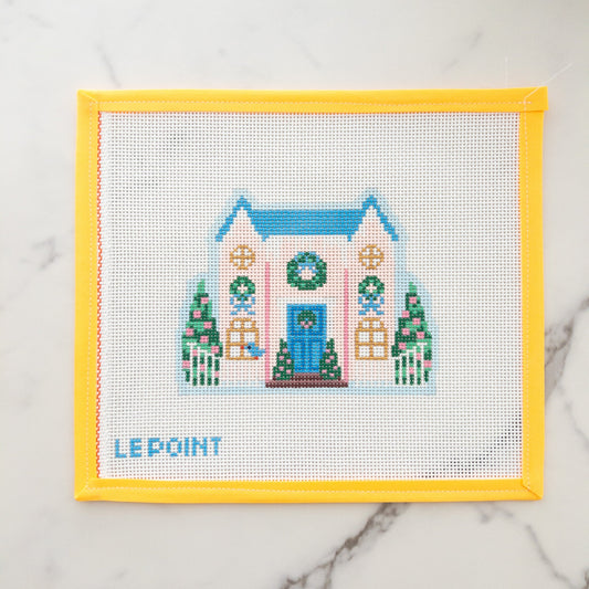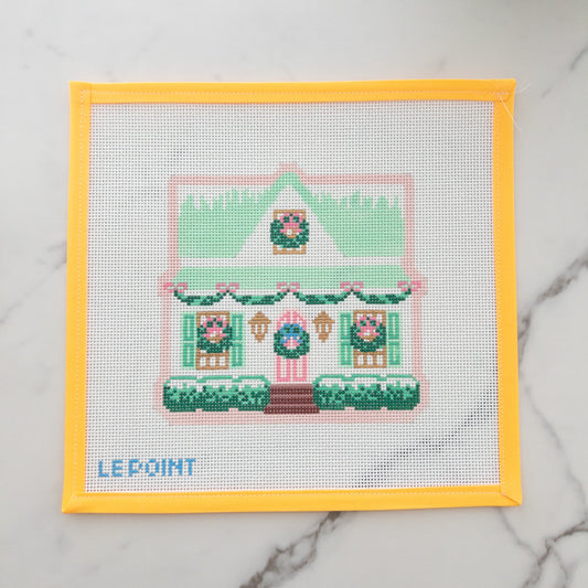 Christmas Village Pink House Needlepoint Canvas
