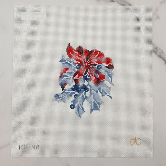 Blue Holly with Red Bow Needlepoint Canvas